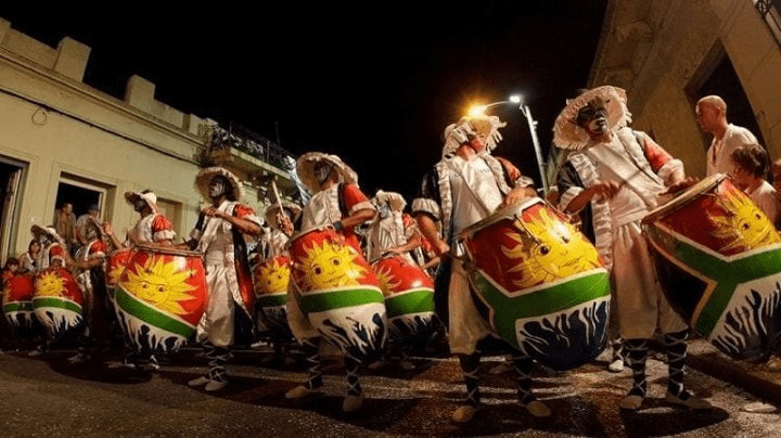 Otro pilar fundamental es el candombe, protagonista del emblemático Desfile de llamadas en los barrios Sur y Palermo. Allí, las comparsas de negros y lubolos recorren las calles al ritmo de cientos de tambores (chico, repique y piano), manteniendo viva una herencia africana declarada Patrimonio de la Humanidad.