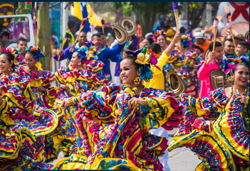 El carnaval colombiano se define por su heterogeneidad regional, teniendo su epicentro en el Carnaval de Barranquilla (Obra Maestra del Patrimonio Oral e Inmaterial). Lexicográficamente, se destaca por la creación de un bestiario festivo único donde conviven figuras como el Rey Momo, la Marimonda y el Garabato. La festividad se caracteriza por la dialéctica entre la vida y la muerte, expresada en danzas de relación y comparsas que integran herencias indígenas, africanas y españolas en un despliegue de sátira social y resistencia cultural.