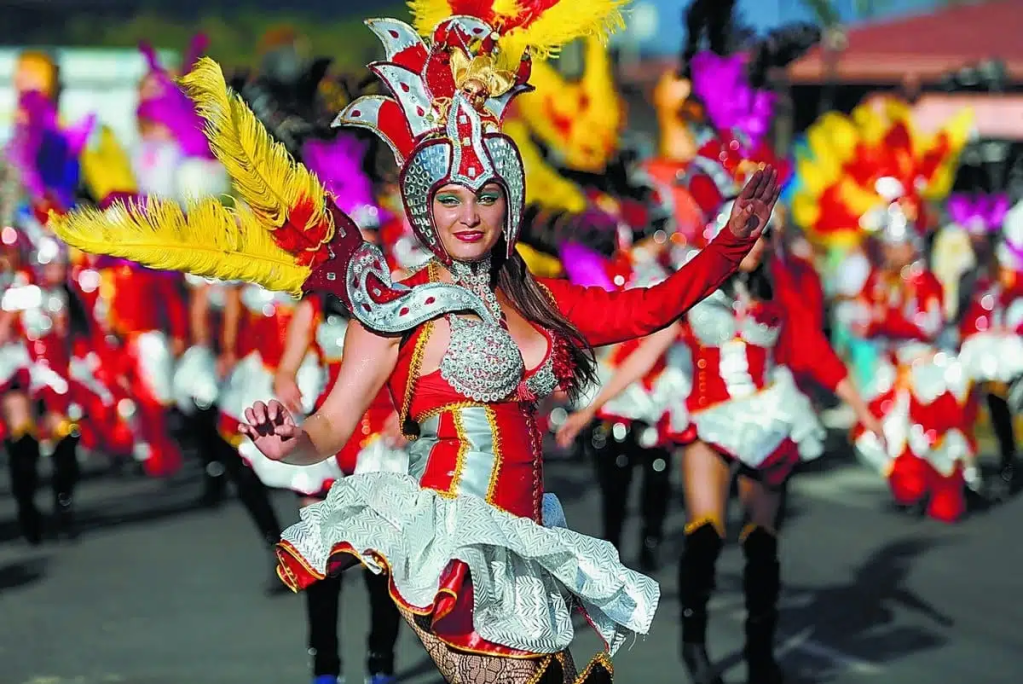 En Bolivia, la festividad del carnaval también se vive de manera auténtica en cada región, reflejo de la diversidad cultural del país. En Oruro, la capital folclórica boliviana, el carnaval es una expresión de fe y devoción que une promesas a la Virgen del Socavón con danzas tradicionales como la diablada, la morenada y los caporales, entre muchas otras. En Tarija, el carnaval se celebra entre comadres y compadres, con coplas, rondas típicas y el cierre festivo del Martes de Albahaca. En Santa Cruz de la Sierra, las calles se llenan de color y de alegría con comparsas, coronaciones, música y mojazón. En La Paz, ch’utas, pepinos y cholitas son los icónicos personajes carnavaleros que despliegan identidad e historia popular. También son representativos el Carnaval de Antaño en Sucre y el Corso de Corsos en Cochabamba.