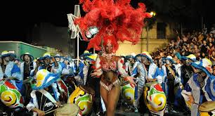 Llamadas: En Montevideo (Uruguay), desfile típico popular realizado por comparsas que bailan candombe al compás de tamboriles.